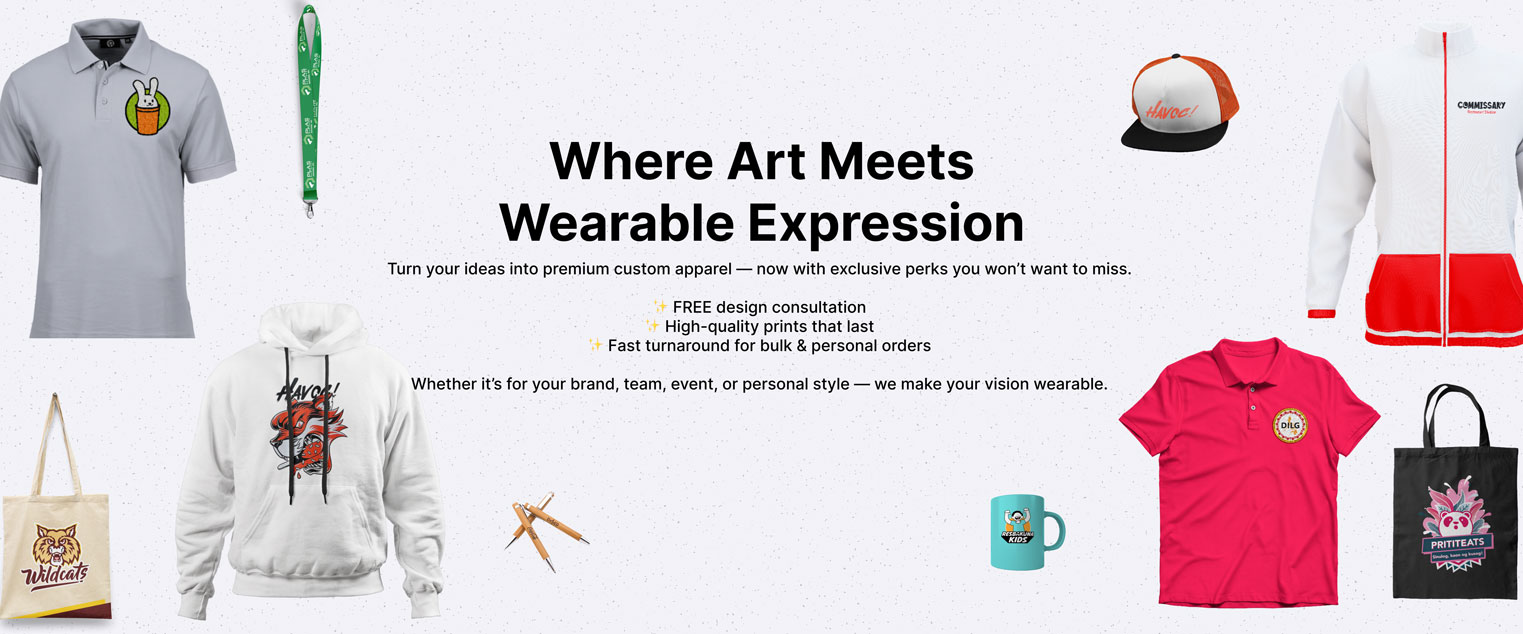 We partner with individuals, brands, schools, and organizations to create custom apparel and merchandise that stands out — not just visually, but in quality and meaning. With a passion for design and a commitment to precision, we ensure every order meets the highest standards from concept to final print.